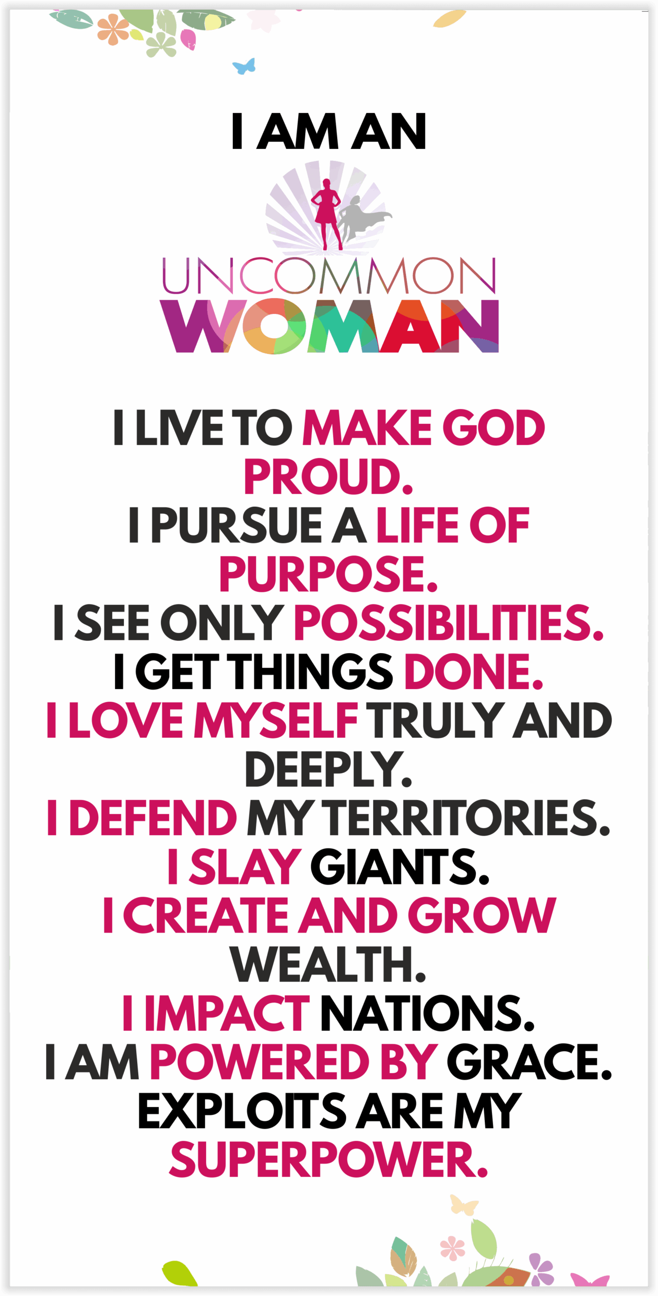 To ignite a Movement of Confident, Ambitious Career Women making God proud by fearlessly unleashing ALL their God-given potentials to transform their lives and world.